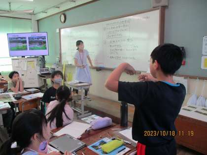 川を流れる水の量が増えると土地の様子はどのように変化するかを考えました。流されr田土が下流に積もる,両岸が削れて川幅が広がるなど多くの予想を立てることができました。