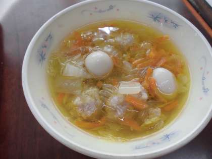 「肉だんごのスープ煮は、肉だんごや白菜、はるさめのいろいろな食感があっておいしかったです。」