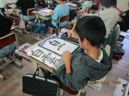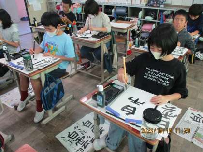 「白雲」に挑戦しました。今回は文字の大きさに気を付けて書きました。力の入れ具合で文字の大きさが変わるので,難しかったと思いますが,今後も意識できるといいですね。