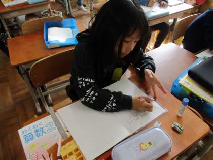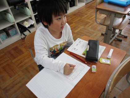 算数科「かけ算(1)」の学習では、1つ分の数が何になるかを考えて式を立てました。文章から絵や図で表すことで、1つ分の数を明確にしていました。かけ算は式の順番が変わると意味が変わってしまうので、意味を考えることがとても大切だと気づいていました。