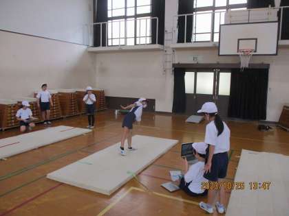 マット運動も終盤に入ってきました。タブレットで見本をみたり,動画撮影をして動きを確認したりして技を高めています。明日で最終です。丁寧に取り組んでいきましょう!!!