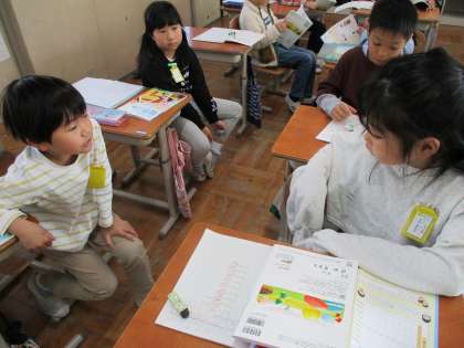 算数科「かけ算(2)」の学習では、7の段の九九をつくりました。アレイ図を使って九九を作るのも2回目となり、スムーズにつくっている人がたくさんいました。7の段を言いづらそうにしている人もいたので、何度も唱えてすらすら言えるように練習しましょう。