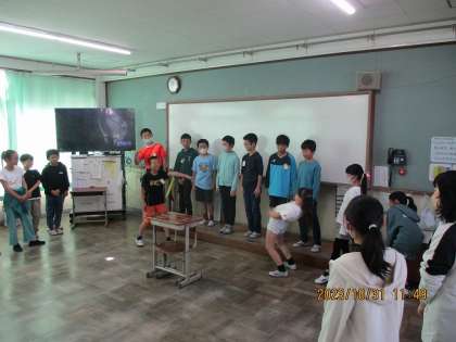 今日はパートごとにわかれて学習発表会にむけての準備をしました。演技の見せ方が重要になります。お互いにアドバイスをしたりと少しずつ良い演技ができるようになってきました。その後は小道具や音楽を考えました。