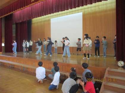 5・6時間目は学習発表会に向けての学習をしました。5時間目は各パートに分かれて演技の確認や小道具作成を行いました。その後は,初めて通し練習を行いました。初めてほかのパートの内容を見ました。どのパートも個性があり面白かったです。土台は完成しました。ここから完成度を高めていきましょう!!!