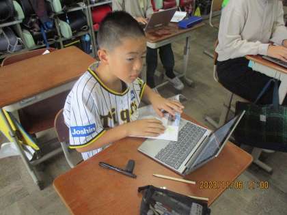 輸送や貿易が日本をどのように支えているかを自分たちで調べていきました。動画や教科書,子どもたちがそれぞれの方法で本日のゴールに向かって学習しています。