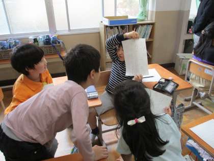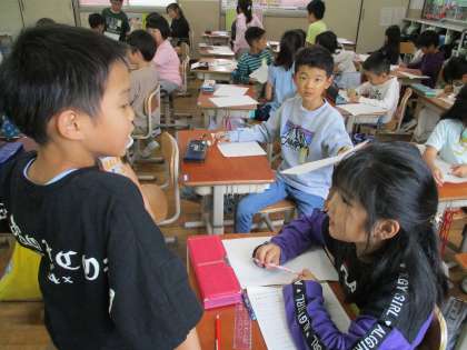 国語科「そうだんにのってください」の学習では、相談会の準備として、友だちの相談を先に聞いて、それに対する自分の考えをまとめました。今日の学習でまとめた自分の考えを、次回の相談会で実際に話したり、友だちの意見を聞いたりして、話し合いを深めていきます。友だちの相談に寄り添い、真剣に考えている姿も見られました。