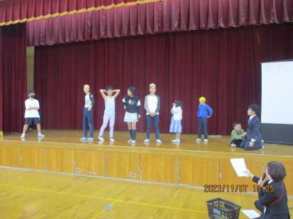 今日から体育館で通して練習をしました。初めてで戸惑うこともありましたが,先生の話をよく聞いて一生懸命動いてくれました。流れが分かったと思うので明日からの動きに期待したいと思います。