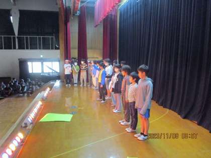 通し練習をしました。緞帳やフットライトなどつけると緊張感もでます。一方で慣れがでてきた部分もあります。緊張感をもって取組,よりよい演技ができるように頑張ろう!!!