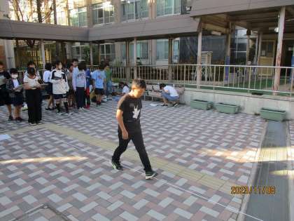 授業で学習した方法で実際に自分の歩幅を求めました。その後はさらに歩幅から距離を当てるゲームも行いました。3クラスから3人もピタリ賞がでました。周りの子も拍手をするなど盛り上がりました。