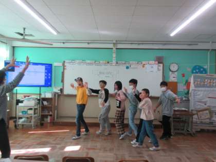 学習発表会に向けて、教室で子どもたちと一緒に動き方やセリフの確認をしました。6年生が中心となって、1・4年生の仲間たちを引っ張り、徐々に形になりつつあります。自信をもって大きな声でセリフを言ったり、身振り手振りを交えて大きく動いたりもできるようになってきました。