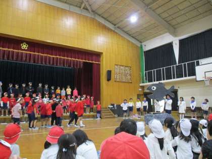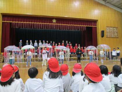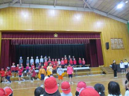 学習発表会がありました。1年生から6年生までのギャラリーが見守る中、緊張をはねのけて堂々と演技をすることができました。最後に拍手をもらったとき、ほっとしている様子が見られました。これまでの練習の成果を発揮できていたと思います。明日は、おうちの人が見てくださる中での2回目の本番です。一生懸命頑張るので温かく見ていただけたらと思います。