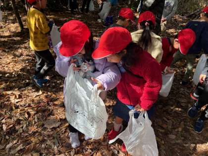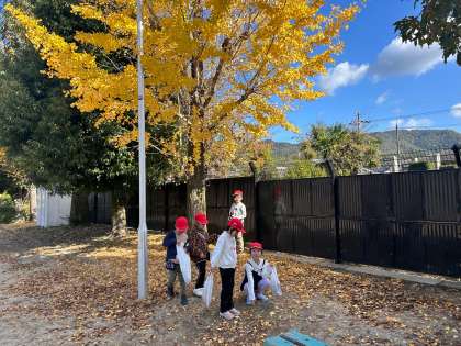 きれいに色づいた落ち葉を拾ったり、まつぼっくりやどんぐりをたくさん見つけたり、とても楽しんでいる様子が見られました。