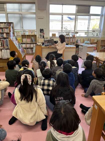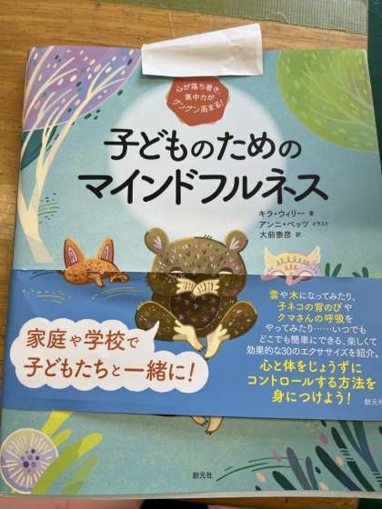 今日は図書室に行きました。西村先生が図書室に居てくださる日は、毎回読み聞かせをしてもらっています。リラックスする方法など本に書いてあることも紹介してもらいました。