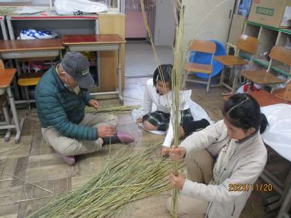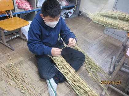 前回と引き続きはかま取りをしました。畑の先生方の力を借りながら今日でしめ縄を綯うのに必要な本数をそろえられる子が多かったです。明日から難しい作業が始まりそうな予感です。