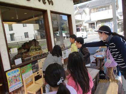 そして今日はパン屋のブレーメンさんにお願いをして、インタビューや見学をさせて頂きました。パンの作り方等たくさんのことを教えて頂いた後、子どもたちは「おいしいパンはどうすれば作れるのですか」や「どうしてブレーメンというお店の名前なのですか」等、たくさんの質問をしました。