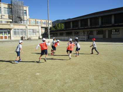 体育科「パスゲーム(1)」の学習では、今日が最後のパスゲームでした。最後ということもあり、「これまで練習してきたこと全部出して、勝ちたい!」と意気込んでいる様子も見られました。試合では、人にパスするだけでなく、人のいないところにボールを投げたり、相手にフェイントをかけてパスしたりなど、自分たちで工夫しながら試合を展開していました。3学期にはパスゲーム(2)が始まります。そこでもさらなるレベルアップを目指して頑張ろう!