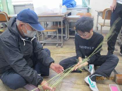 今日ははかま取りしたわらを綯いました。手でこすすような感じでわらをねじりながら進めていくので難しい活動でしたがコツをつかむと上手にできるようになっていました。次はいよいよ本番です。納得のいくしめ縄を作ろう!!