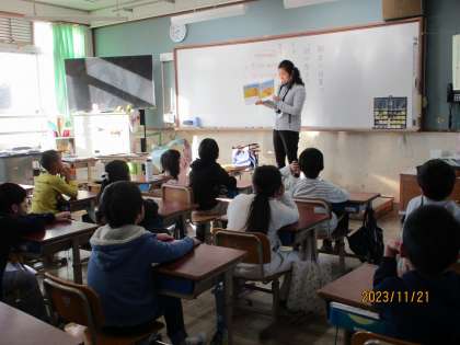 今日は地域の方に読み聞かせをしていただきました。読み聞かせを楽しみにして、いつもより早く登校している人もいました。一生懸命聞いて、楽しんでいました。