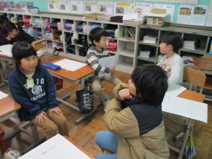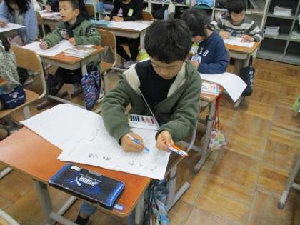 国語科「馬のおもちゃの作り方」の学習では、分かりやすい説明の工夫を探しました。自分たちが馬のおもちゃを作ったときに、実際に作業したことが書かれている文に線を引いて確かめました。センチメートルや個数を詳しく書くことや「まず」「つぎに」と順序だてて文章を書くことなど、友だちと相談しながらたくさんの工夫を見つけていました。