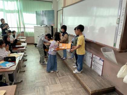 3年生へ学習発表会のメッセージを書きました。3年生の発表は、英語を使ってセリフを言っていたり、京都のことを詳しく説明していたりして2年生を驚かせていました。そんな3年生へ思いを込めて、メッセージを書き、渡しに行きました。