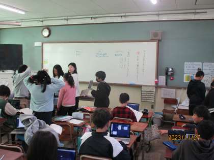 資料を使った意見分を書くためにロイロノートのシンキングツールを使って文書の構成を考えました。自分が何を伝えたいのか,自分の考えをまず持つことが大切です。どんな意見分ができるのか楽しみです。
