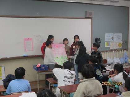 給食時間に4年生が学習発表会の手紙を渡しに来てくれました。どの手紙も文章がびっしり書かれていてうれしかったです。さらに今日は放送体験で4年生が5年生の発表について話してくれて,5年生の顔に笑みがでていました。