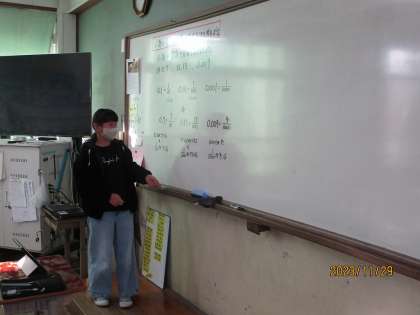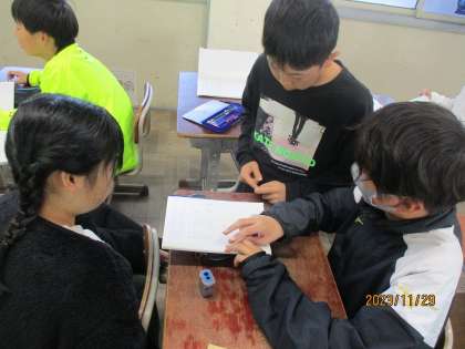 小数や整数を分数で表す方法を考えました。初めは困っていましたが10分の1を小数で表したら,0.1を分数であらわしたらどうなるかというところから考えると意外と簡単に感じた子が多かったです。整数の場合もこれまでの学習を使って解くことができました。