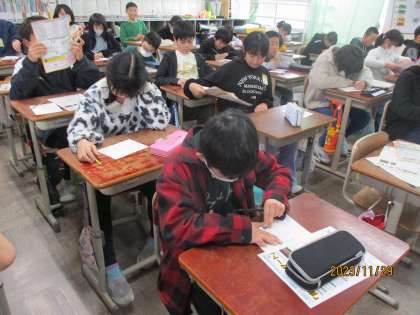 前回に引き続き「約分」の学習をしました。まだ割り切れる。まだ割れる…と割り続けられるかどうか懸命に考えながら求めていました。マスターしていこう!!!