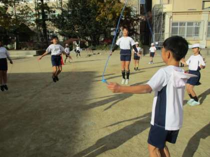 縄跳びでは、二重跳びやあや跳びといった技ができるかどうかが子ども達には大事なようです。二重跳びが連続で何回跳べるか。ロープの回し方がカギとなります。となると、いいロープでないとうまく回りません。少し重みがあってよく回る跳び縄が必要です。少し値段が上がりますが、長さも調節できるものを使う方がいいでしょう。高学年になると、あや跳びの二重跳びの通称「ハヤブサ」という跳び方ができる子も出てきます。4年生ではまだ難しいでしょう。段階を踏んで、目標を設定して、挑戦していってほしいと思います。