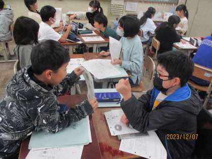 学年で行う冬まつりぬ向けて「注文の仕方の工夫を考える」学習をしています。おすすめを聴いたり伝えたりするなど多くの工夫が出てきました。それの表現をどのように伝えたら良いかの困りを助け合えて深めていく姿が素敵でした。