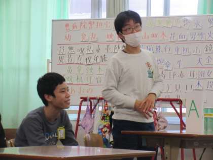 色や数字、動物の英語表現を使いながら、クイズに答えたり、沢山のポイントを獲得するためにゲームをしたりなど、前向きに活動できたように思います。チームごとに相談しあい、学んだ表現を使うために頑張る姿が印象的でした。