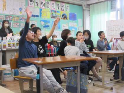 5時間目の研究授業では、たくさんの参観者がいる中、子ども達は一生懸命に英語を通してコミュニケーションを取るために活動をしました。