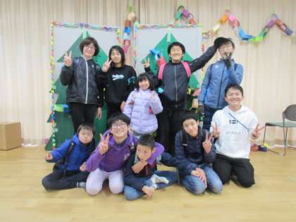 岩倉南小学校に左京区北支部育成学級の仲間たちが集まり、お楽しみ会を行いました。各校がこの日のために、みんなで盛り上がれる出し物やプレゼントを用意し、賑やかな雰囲気でお楽しみ会が始まりました。