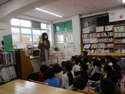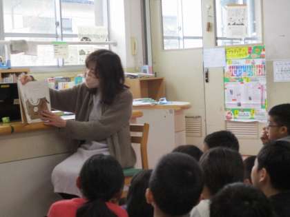 西村先生に『クリスティーナとおおきなはこ』という本を読み聞かせしていただきました。国語科の「わたしはおねえさん」の関連図書で、このお話には2年生のみんなと同じくらいの年の子どもが出てきます。すみれちゃんシリーズのお話もたくさん読んでいる人もたくさんいます。