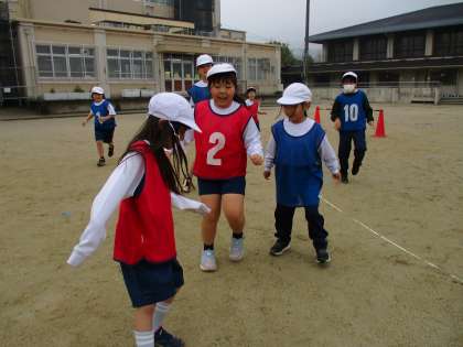 体育科「ボールけりゲーム(1)」の学習では、チームで協力して試合を進めている姿が見られました。雨の影響もあり、途中で終わってしまったクラスもありましたが、準備も片付けも協力しながらスムーズに行っています。また、今日は自分で一つめあてをもって取り組みました。自分の課題を克服できるようにレベルアップしている姿がたくさん見られました。