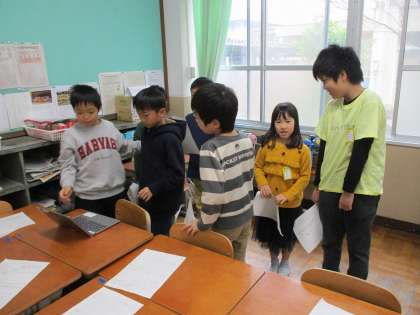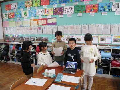 生活科「もっともっとまちたんけん」の学習では、明日の発表にむけて準備を進めています。台本を書いて、実際に写真の操作をしながら、読み合せをしました。実際に読み合わせをしてみると、改善できるところが見つかったグループもいました。