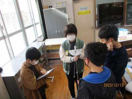 前回はふりこの長さを変えた実験でしたが,今回はおもりの重さを変えて実験しました。ストップウォッチで往復の時間を計測しました。子どもたちの中には振り子と同じように左右に揺れている子もいました。