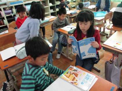 算数科「わくわく算数ひろば」の学習では、1つが100で買えるかどうかをもとにお買い物ができるか考えました。教科書の絵を見ながら、自分の言葉で買えるかどうかを説明しました。「この考え方はこれからもお買い物で使えそう!」と振り返っている人もいました。