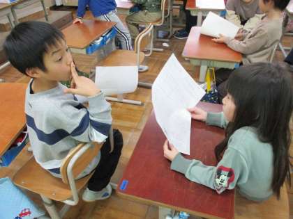 国語科「わたしはおねえさん」の学習では、友だちと感想を読み合ってよいところを伝え合いました。同じ場面を心に残ったところに選んでいても、ちがう理由を書いていたり,すみれちゃんと自分が似ていると書いている人もいれば、すみれちゃんと自分はちがうと書いている人もいました。「自分とくらべることで、自分のこともよく分かった。」と学習をふりかえっている人もいました。