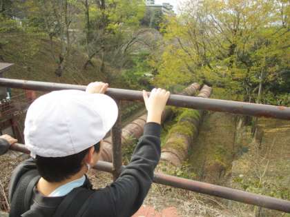 翌日子どもたちに印象に残ったことを聞いてみると、「第一竪坑の大きさに驚いた。写真で見るのとは違う。」「比べて第二竪坑は細長く見えた。」という声が特に聴かれました。実物のもつ圧倒的な存在感を感じることも、今回の目的の一つです。画像や動画では得られない感覚、これを私達は大切にしなければ、と改めて思いました。