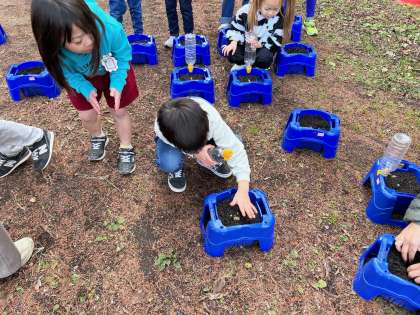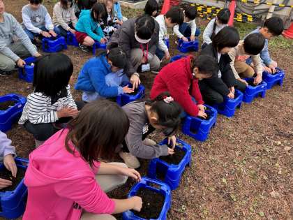 植えるときには優しく球根を扱い、大切そうに植える子どもたち。どんな色のチューリップが咲くか楽しみです。
