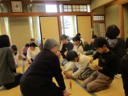 これまでさまざまな伝統文化体験をしてきましたが、新年初回は「茶道体験」でした。4人の先生に教わりながら、自分でお茶をたてていただきました。「どうしてお菓子とお茶を別々にいただくのですか?」「道具の扱い方にもルールがあるのですか?」「うつわをまわすわけはなんですか?」知りたいことを聞いてさらに深く知る・・・とても貴重な体験ができました。日本の文化は「おもてなし」の心ですね。