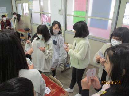 中間休みの教室での様子です。絵を描く子や本を読む子もいますが,今日はトランプでババ抜きをするので盛り上がっていました。たくさんの人を誘って仲良く遊んでいました。