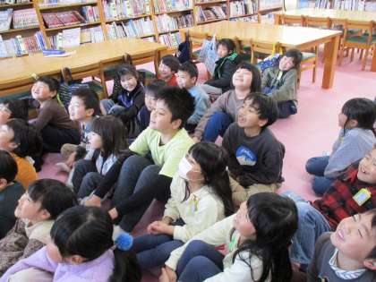 3学期初めての図書の時間では、『こんなしっぽでなにするの』の絵本を読み聞かせしていただきました。いろんな生き物のおもしろい生態に興味深々でした。冬休みにたくさん読書したことを西村先生に嬉しそうに報告している人もいました。