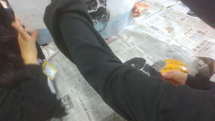 図画工作の学習では、紙版画に挑戦しています。紙を切って貼って版をつくり様々な素材を張り付けて模様を付けました。出来上がった版画をみてとてもうれしそうにしていました。