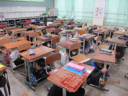 地震を想定した避難訓練をしました。子どもたいはいつも真剣に訓練に取り組んでいますが,1月にあった能登半島大地震のこともあり,いつも以上に取り組む姿勢が良かったです。