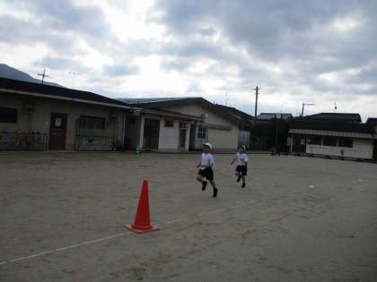 体育科「ゆっくりかけあし」「なわとび」の学習では、寒さに負けず体をいっぱい動かしています。ゆっくりかけあしでは5分間走りました。前回より時間が増えたので、立ち止まりそうになっている人もいましたが、最後まで歩くことなく走り切っていました。