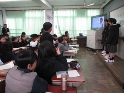 「自分たちで調べたことによって新しく知ったことがあった。とちゅう、難しいことや分からないことも出てきた。でも、発表で伝えることができてうれしかった。」「緊張して当たり前と言われていたけど、早口になってしまった。」「どうしても画面を見てしまう。どうしたらいいのかなあ。その点、高校生は上手だった。」「自分としては思い通りに発表できたけど、高校生のようにいろいろなアプリも知りたい。」「高校生の発表はさすが。ぼくたちにない視点で考えていた。」などでした。