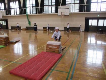体育科「とびばこあそび」の学習では、お互いに励まし合いながらレベルアップを目指している姿が見られました。「もっと助走の勢いをつけて!」「手でしっかり押す!」と友だちからのアドバイスを受けて高い段にも挑戦している人がたくさんいました。