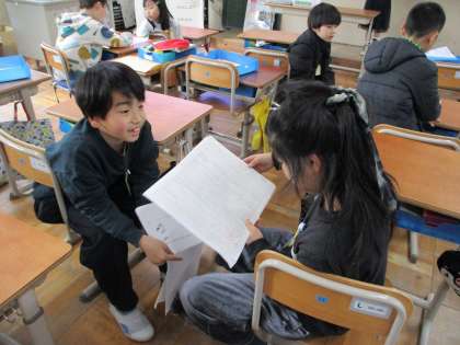 国語科「おにごっこ」の学習では、調べた遊びを友だちに紹介しました。相手につたわりやすいように、言葉を選んだり、身振り手振りも交えて一生懸命伝えようとしている姿が見られました。
